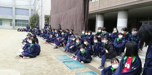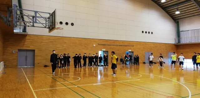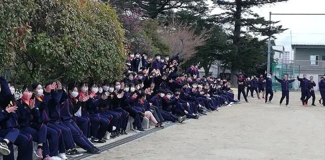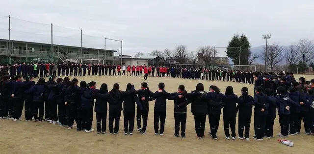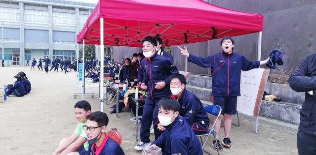 そして、2年生チーム対教員チーム、戦う前に2年生は学年で1つの大きな円陣をくんで気持ちを一つに