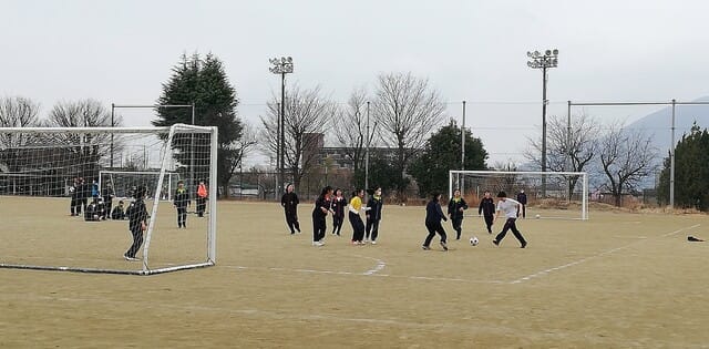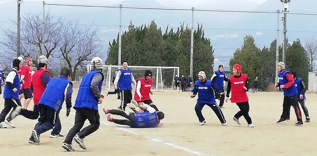 山梨県立日川高等学校 > 日記 > 体育大会2日目 2021年3月8日カテゴリー: 日記 体育大会2日目 本日(3月8日)、体育大会の2日目が行われました。 男女別バレーボール、バスケットボール、サッカーはクラス対抗のリーグ戦でした。 ▼女子バレー ▼男子バレー ▼女子サッカー ▼男子サッカー ▼女子バスケ ▼男子バスケ 同点になってフリースローで決着、胴上げというシーンもありました。 そして、この体育大会のメインであるラグビーは、最初に学年対抗で1年対2年の戦いで勝った方のチームが教員チームと戦う・・という流れです。 1年対2年は、2年生が貫禄勝ちでした! ▼2年生盛り上がっていました! ▼1年生、緊張の面持ちで選手を見守ります・・ そして、2年生チーム対教員チーム、戦う前に2年生は学年で1つの大きな円陣をくんで気持ちを一つに ▼教員チーム、始まる前は笑顔・・・ 試合が始まってまず最初に校長先生のトライ!教員チームも底力出していました ▼審判も実況中継も2年生ラグビー部が担当。実況中継では笑いも取りつつ、審判がなぜ止めたのか解説もしてくれて、わかりやすかったです。すごく盛り上がりました! 教員チームが3トライ目を決めたあと、2年生チームも2トライ取り返し、最終的に3-2で教員チームの勝利でした! 大きなけがもなく、無事に終えられてよかったです。 みなさんおつかれさまでした!