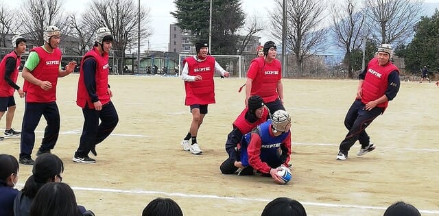 教員チームが3トライ目を決めたあと、2年生チームも2トライ取り返し、最終的に3-2で教員チームの勝利でした!