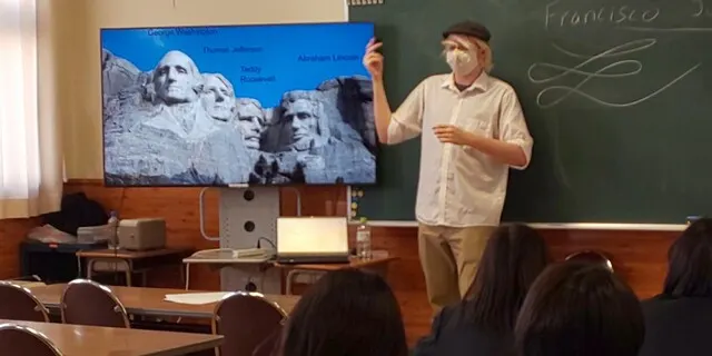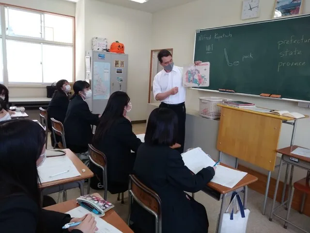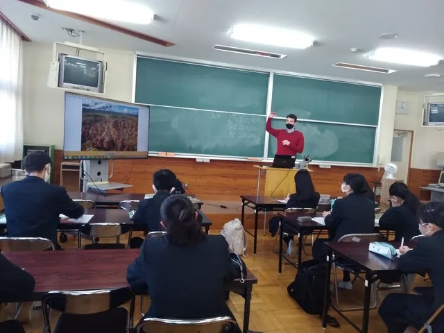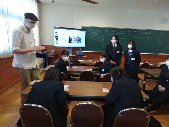 山梨県立日川高等学校 > 国際交流 > English Day 2021年3月16日カテゴリー: 国際交流 English Day 3月15日(月)、笛吹市春日居町のスピークイージー外国語学校から3人の先生をお招きしてEnglish Dayを行いました。 本校の1、2年次生31人が参加し、1日英語を使ったやり取りを楽しみました。 約10人ずつのグループに分かれてカナダ、オーストラリア、アメリカの文化や言語についてのレッスンを受けた他、ゲームやクイズにも英語で挑戦しました。 カナダのレッスン オーストラリアのレッスン アメリカのレッスン クイズ&ゲーム大会