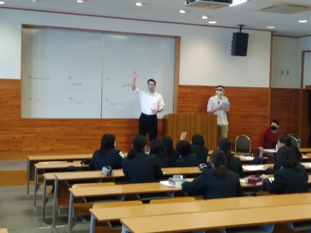 本校の1、2年次生31人が参加し、1日英語を使ったやり取りを楽しみました。