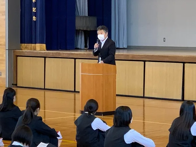 5月27日(木)、3年次キャリア教育講演会の一環で、知事政策補佐官である斉木邦彦先生(前県教育長)より「教職の勧め」を演題としてメッセージをいただきました。