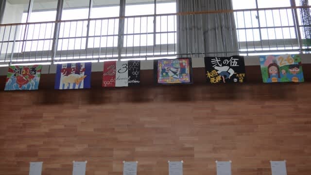 クラス参加のステンドグラスとクラス旗