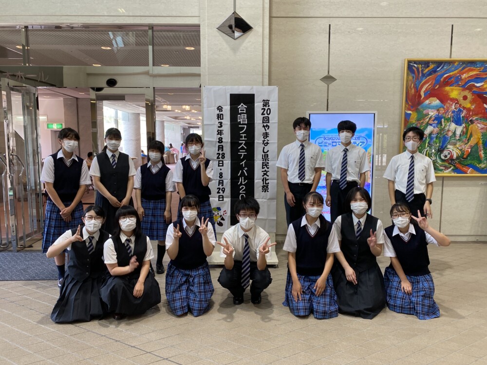 8/28(土)東京エレクトロン韮崎文化ホールで行われた、「 第74回全日本合唱コンクール関東支部山梨県大会」において、 日川高校・甲府城西高校合同合唱団が金賞を受賞し、 9月18日にさいたま市で開催される関東支部大会への出場を決め ました。