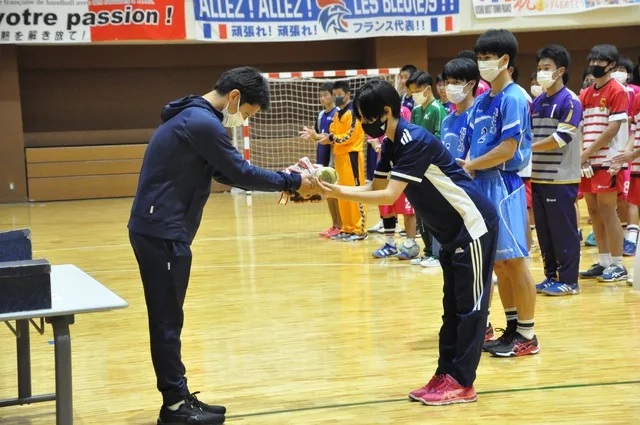 山梨県立日川高等学校 > 部活動 > 新人戦 女子ハンドボール部 2021年11月1日カテゴリー: 部活動 新人戦 女子ハンドボール部 女子ハンドボール部です。 10月30日(土)、新人大会決勝が行われました。 駿台甲府高校と対戦し、28対8で勝利し、優勝しました。 表彰式↓ 応援ありがとうございました!