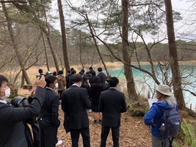 山梨県立日川高等学校 > 行事 > 修学旅行 > 修学旅行2021 5組 五色沼散策 2021年11月18日カテゴリー: 修学旅行 行事 修学旅行2021 5組 五色沼散策 5組です。あぶくま洞のあと、五色沼散策をしました。 慣れない山道に苦戦していましたが、大自然を堪能できました。