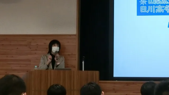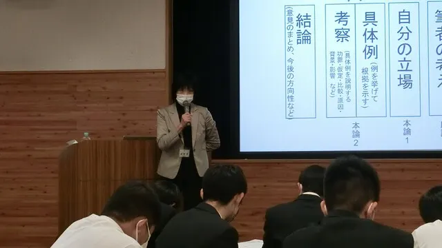 山梨県立日川高等学校 > 日記 > 令和4年度 1年次 第2回小論文説明会 2022年12月22日カテゴリー: 日記 令和4年度 1年次 第2回小論文説明会 12/21(水)視聴覚室より1年次 第2回小論文説明会を行いました。 講師 学研 鈴木 礼美(すずき ひろみ)先生 先生からの質問にも積極的答えていました。 進路実現に向けて、自己表現力(「思考・構想力」「書く力」)を高めるために、各自が作成した小論文を改善するための視点などのお話をしていただきました。 ありがとうございました。