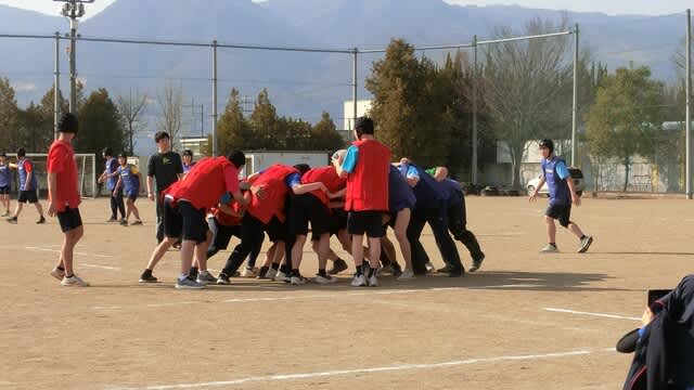 山梨県立日川高等学校 > 日記 > 令和4年度令和4年度 体育大会 2日目 2023年3月8日カテゴリー: 日記 令和4年度令和4年度 体育大会 2日目 本日3/8(水)体育大会 2日目を行いました。 本日も天候に恵まれ朝から熱い決戦が続いています。 ★サッカー ★バレーボール ★バスケットボール ★ラクビー・エキシビションマッチ 1年次対2年次 5対152年次勝利 勝利チームと教員チームが対戦しました。 アップをしっかりしていました。 教員チーム対2年次 15対5で教員チームが勝利しました。 素晴らしい試合でした。お疲れ様でした。 ★閉会式 2日間お疲れ様でした。
