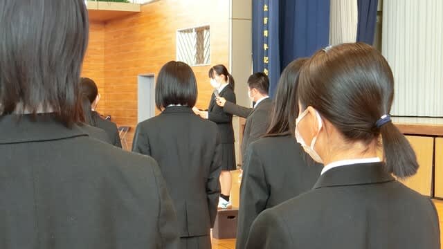 本日4/10(月)体育館にて対面式・納め式が行われました。