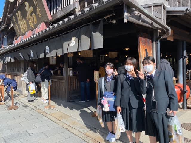 山梨県立日川高等学校 > 行事 > 修学旅行 > 令和5年度 修学旅行 クラス別行動(4組) 2023年11月17日カテゴリー: 修学旅行 行事 令和5年度 修学旅行 クラス別行動(4組) 4組のクラス別は 伊勢神宮でした。