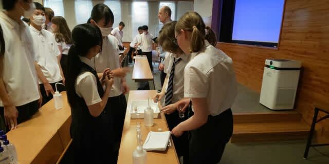 午後は、1年1組と2年1組によるサイエンスフェアが実施され、