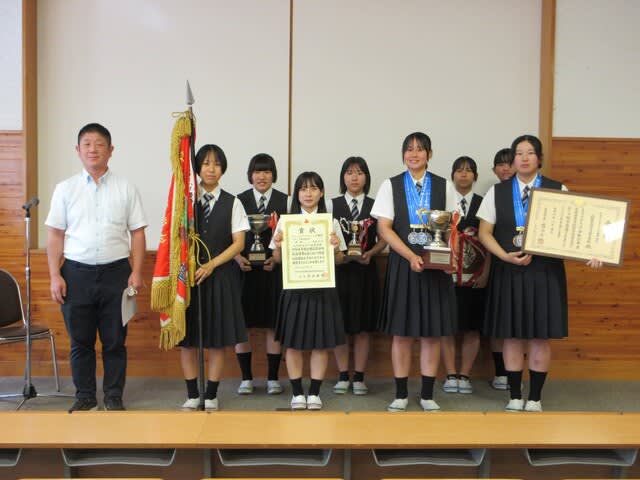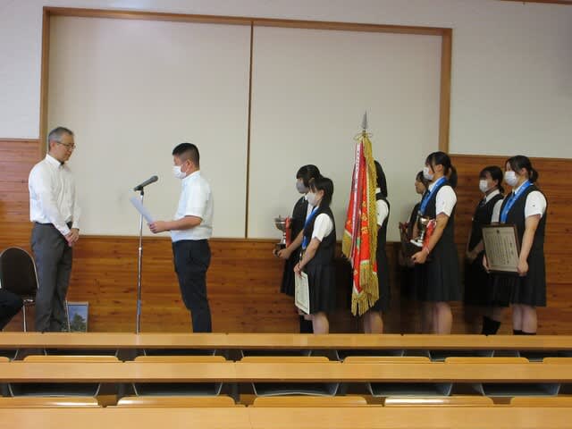 8月20日(火)視聴覚室よりリモート配信にてウエイトリフティング部女子が 8月2日~5日まで長崎県諌早市会で行われたインターハイに おいて団体優勝をしたことの報告会を行いました。 優勝おめでとうございます!