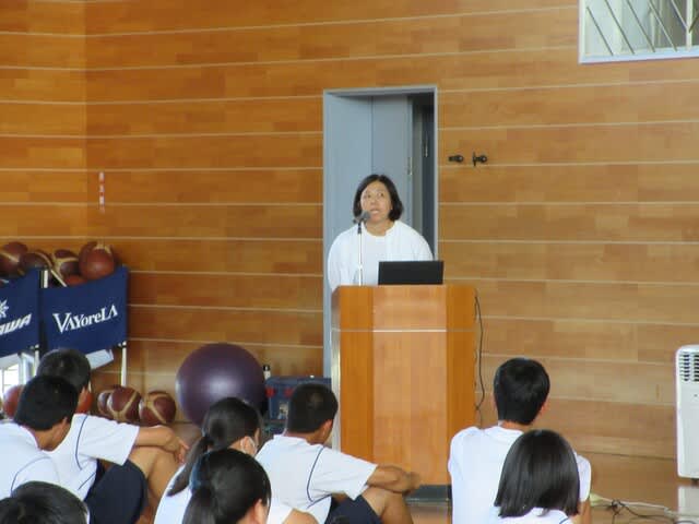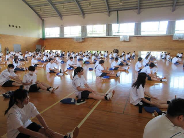 8月26日(月)体育館にて1年次を対象とした ストレスマネジメント講座を行いました。 講 師 : 小田切やよい先生(本校スクールカウンセラー) 演題 :~SOSの出し方~ ・セルフモリタリング(ストレスに気づくこと) ・ストレスコーピング(ストレスの対処法を知る) 自分たちで考え紙書くことでストレスに気づき対象法を 知るきっかけになるとお話がありました。 *リラックスする呼吸方法・ストレッチを教えていただき 実際に体験もしてみました。 講師の先生ありがとうございました。