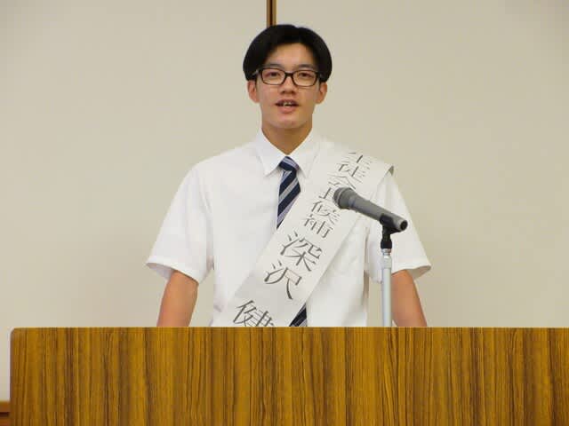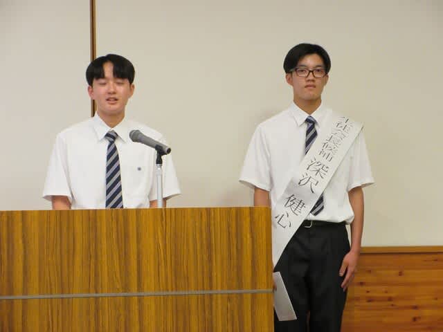 2年1組 深沢 健心くんが立候補しました。