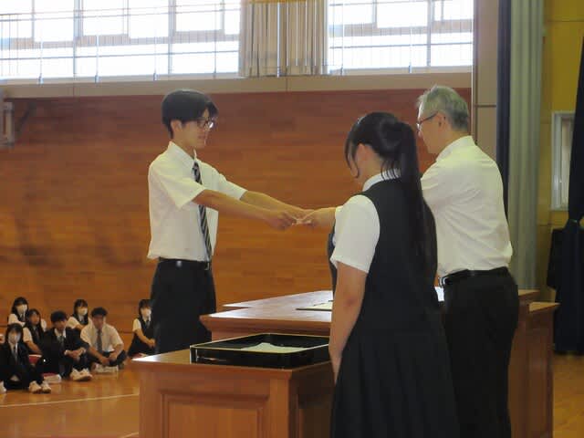 本日9月30日(月)体育館にて生徒会長認証式を行いました。