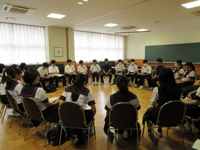 10月6日(日)オープンスクールに参加できなかった 県下の中学生を対象にスクールツアーを開催しました。 多くの中学生・保護者の方々達が参加してくれました。 ★校長挨拶・学校紹介ビデオ ★施設案内 施設案内は先輩達の話しを楽しく聞きながら回っていました。 ★先輩と語る 修学旅行・学園祭・部活動・学習などのことを直接詳しく聞くことができる 良い機会に多くの質問をしていました。 日川高校は皆さんを待っています。 お疲れ様でした。