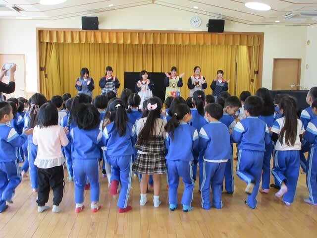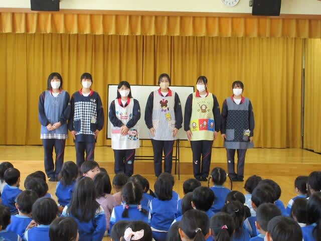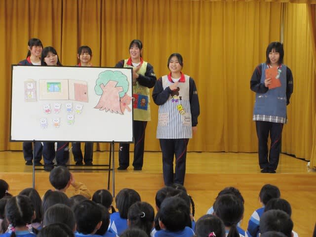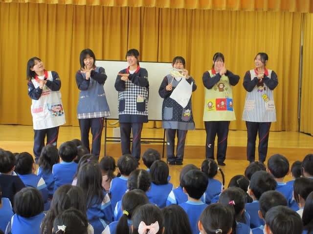 山梨県立日川高等学校 > 日記 > 保育体験実習(発表会) 2025年1月14日カテゴリー: 日記 保育体験実習(発表会) 本日1月14日(火)風の子保育園に保育実習に行きました。 3年文系選択:子どもの発達と保育の授業で風の子保育園にきた様子です。 7回ある実習の7回目で、今までのお礼をこめて、 パネルシアター、クイズ、手遊びなどの発表をしました。 園児達は大きな声で一緒に参加してくれました。 発表会のあと園児一緒に遊びました。園児のパワーに圧倒されました。 ありがとうございました。
