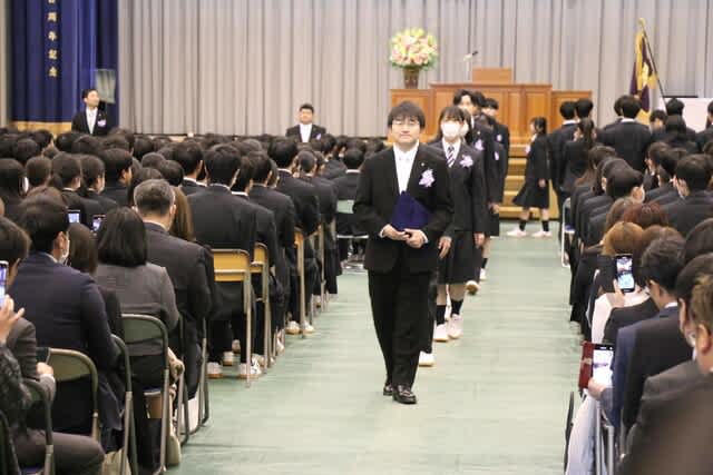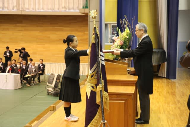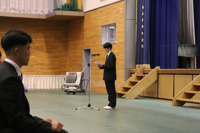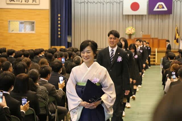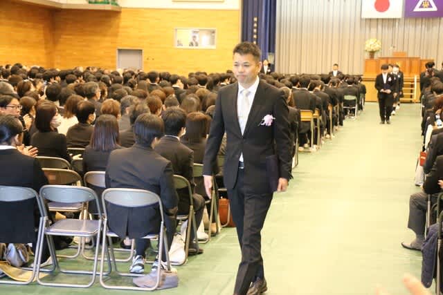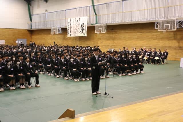 山梨県立日川高等学校 > 行事 > 令和6年度卒業証書授与式 2025年3月1日カテゴリー: 行事 令和6年度卒業証書授与式 本日3月1日(土)令和6年度 卒業証書授与式が行われました。 【卒業証書 授与】 *普通科 第77回卒業生 193名 【文武両道奨励賞 授与】 *10名の生徒に送られました。 【校長 式辞】 【祝辞】 同窓会会長 芦澤 薫様 PTA会長 丹澤 修 様 【送辞】 在校生代表 深沢 健心 【答辞】 卒業生代表 保坂 凰太 【退場】 祝電を関係各位より多数いただきました。 ありがとうございました。 【各教室にて】 *3-1 *3-2 *3-3 *3-4 *3-5