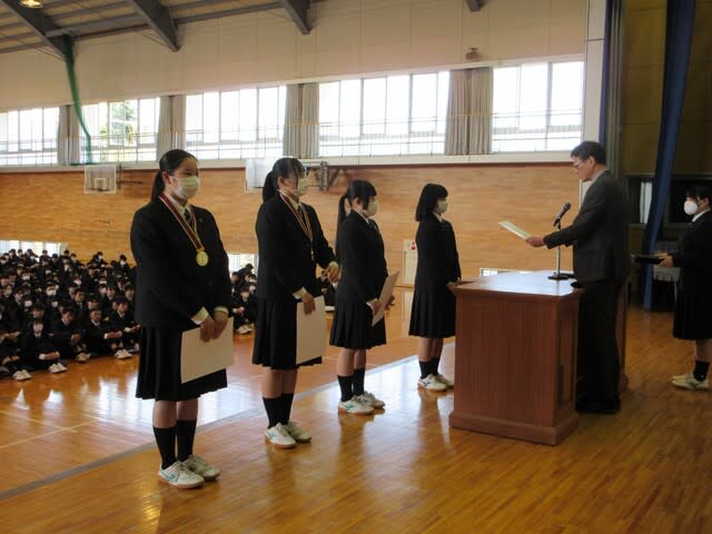 山梨県立日川高等学校 > 行事 > 対面式・納め式 2025年4月9日カテゴリー: 行事 対面式・納め式 本日4月9日(水)体育館にて対面式・納め式が行われました。 ★対面式 ・校長先生のお話 2・3年次は日高生としての誇りもって1年次にその姿ををみせて 行動して欲しいなどのお話しがありました。 ・生徒会長から 先輩達を頼ってより良い生活を送ってほしいなどのお話しがありました。 ・新入生挨拶 代表 芦澤 櫂 ★納め式 *ウエイトリフティング部・女子 令和6年度第40回全国高等学校総ウエイトリフティング部競技選抜大会 の納めを行いました。