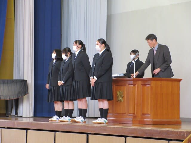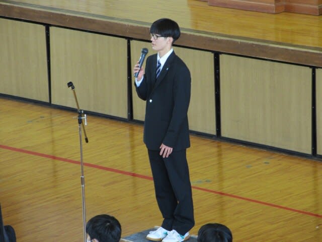 本日4月9日(水)体育館にて対面式・納め式が行われました。 ★対面式 ・校長先生のお話 2・3年次は日高生としての誇りもって1年次にその姿ををみせて 行動して欲しいなどのお話しがありました。 ・生徒会長から 先輩達を頼ってより良い生活を送ってほしいなどのお話しがありました。 ・新入生挨拶 代表 芦澤 櫂 ★納め式 *ウエイトリフティング部・女子 令和6年度第40回全国高等学校総ウエイトリフティング部競技選抜大会 の納めを行いました。