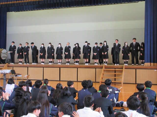 4月23日(水)体育館にて前期生徒総会を行いました。 ★ホームルーム長役員任命式 令和7年 ★生徒会目標 『全校生徒が一体となった生徒会』 ★生徒会スローガン 『共創』 ・第74回紫風祭については活発な意見がでました。 ★第77回山梨県高等学校総合体育壮行会 *新任の先生による応援! 全校生徒盛り上がっていました。 *応援団・吹奏楽部応援 5月7日(水)~5月9日(金)で行います。 選手のみなさん頑張って下さい!応援よろしくお願いします。