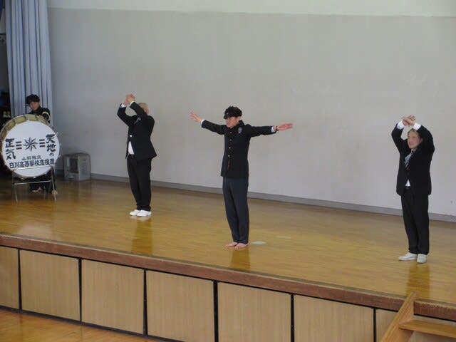 山梨県立日川高等学校 > 行事 > 令和7年度 前期生徒総会・壮行会 2025年4月25日カテゴリー: 行事 令和7年度 前期生徒総会・壮行会 4月23日(水)体育館にて前期生徒総会を行いました。 ★ホームルーム長役員任命式 令和7年 ★生徒会目標 『全校生徒が一体となった生徒会』 ★生徒会スローガン 『共創』 ・第74回紫風祭については活発な意見がでました。 ★第77回山梨県高等学校総合体育壮行会 *新任の先生による応援! 全校生徒盛り上がっていました。 *応援団・吹奏楽部応援 5月7日(水)~5月9日(金)で行います。 選手のみなさん頑張って下さい!応援よろしくお願いします。