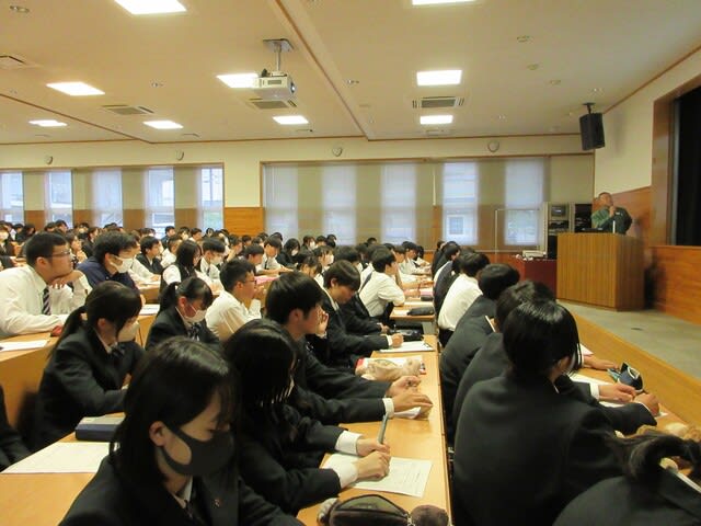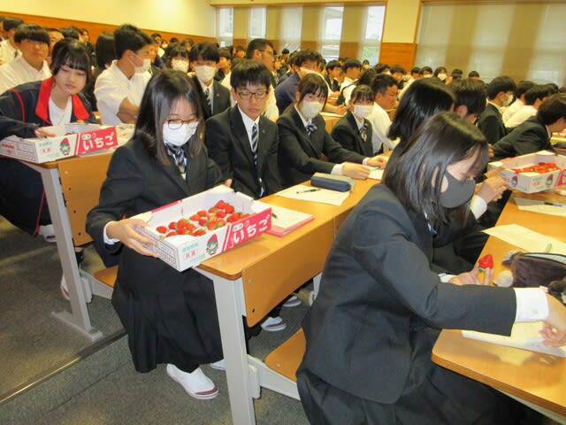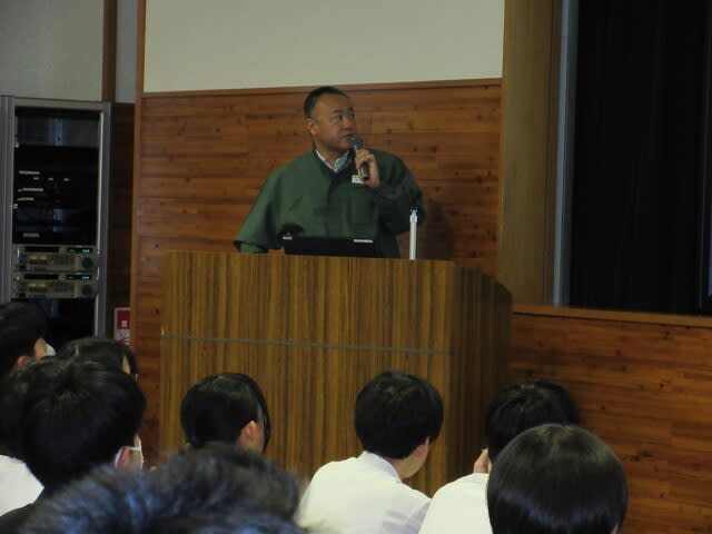 山梨県立日川高等学校 > 日記 > SSⅠ「職業人と語る③」 2025年5月2日カテゴリー: 日記 SSⅠ「職業人と語る③」 本日5月2日(金)視聴覚室に1年次を対象に専門分野の方々の お話を聞きました。 【講演①】 分野:技術(エネルギー・工業) 技術研究組合FC-cubic 専務理事 小島 康一 様 *山梨県と水素 【講演②】 分野:技術(食品・地場産業) 株式会社シャトレーゼ 丹澤 友和 様 *シャトレーゼ調達活動 ・いちごの試食もいただきました。 ・多くの質問もでました。 講師の方々ありがとうございました。