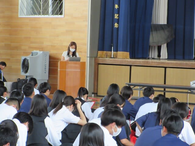 山梨県立日川高等学校 > 日記 > SSⅠ「職業人と語る⑤」 2025年6月3日カテゴリー: 日記 SSⅠ「職業人と語る⑤」 本日5月23日(金)体育館にて1年次を対象に専門分野の方々の お話を聞きました。 【講演①】 分野:技術 講師:帝国インキ製造株式会社 山梨工場長 堀内 明彦 様 実際に部品を持ってきていただきました。 【講演②】 分野:福祉・医療 講師:山梨市役所こども・子育て課 後藤 志帆 様 ありがとうございました。