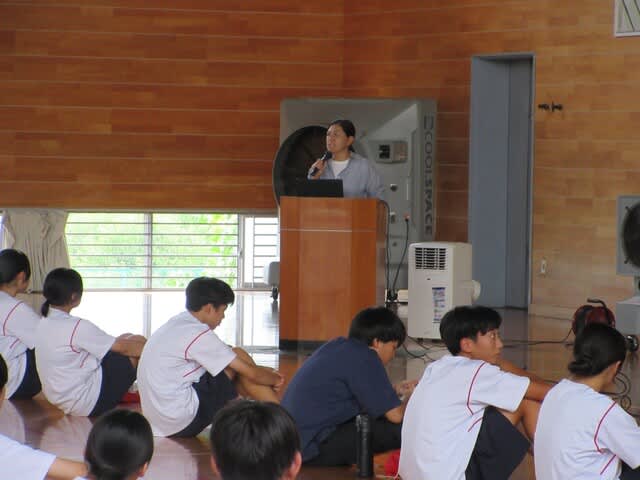 山梨県立日川高等学校 > 日記 > ストレスマネジメント・SOSの出し方講和 2025年8月26日カテゴリー: 日記 ストレスマネジメント・SOSの出し方講和 8月25日(月)体育館にて1年次を対象とした ストレスマネジメント講和を行いました。 講 師 : 小田切やよい先生(本校スクールカウンセラー) ・自分の心身の状態に気づくには・ストレスの対処法 ・自殺に至る状況 ・SOSの出し方 ・友人の異変に気付いた時などを中心にお話ししていただきました。 *リラックスする呼吸方法・ストレッチを教えていただき 実際に体験もしてみました。 講師の先生ありがとうございました。