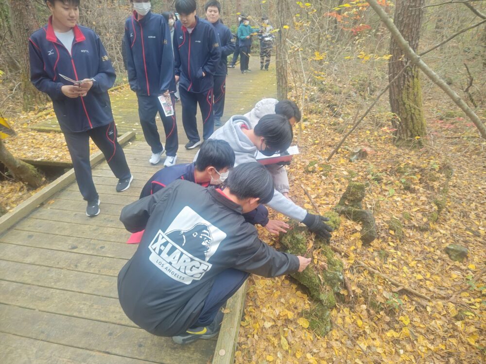 野外活動でフィールドビンゴを行いました。 富士山の自然に触れる良い機会でした。(気温は5° 今シーズン最低のー2°を記録したそうです。)