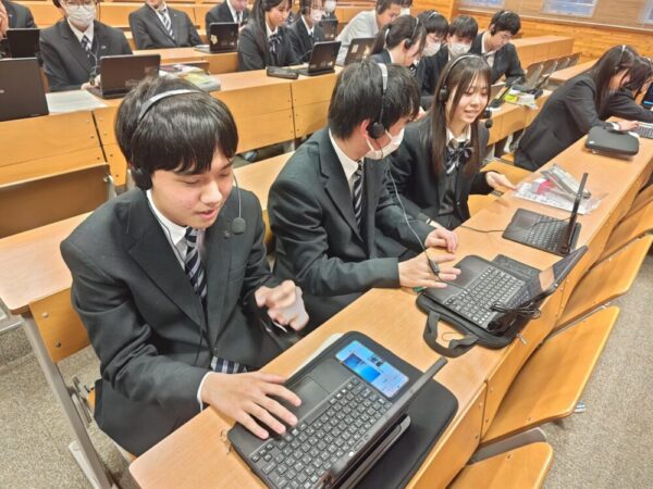双方が課題研究の発表を行い、質疑応答をしながら、お互いの研究について国を越えて知る機会になりました。