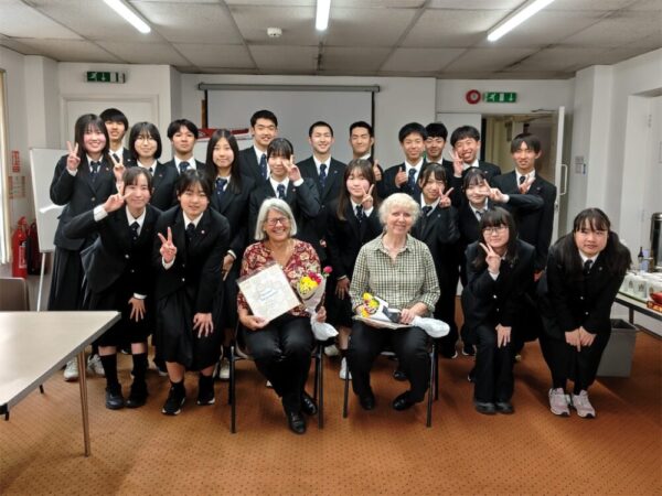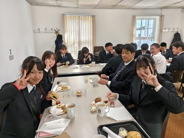 英語のレッスンは今日が最終日。お世話になった先生お二人に花束と色紙を差し上げました。その後スコーンをみんなでいただきなごやかなひとときを過ごしました。